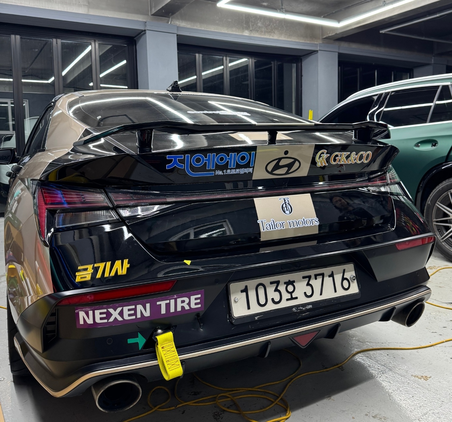 유튜버 금기사 차량에 랩핑된 (주)지엔에이 후원 로고